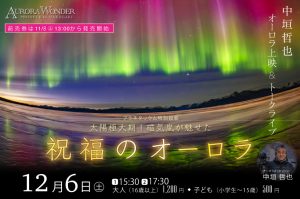全国でオーロラの魅力を伝えるオーロラメッセンジャー・中垣哲也さんによるトークライブを開催します。4年ぶりとなる今回は、11年周期で訪れる太陽の極大期がもたらす赤いオーロラや星空、極北の自然を通して『奇跡とも言える地球の素晴らしさ』をプラネタリウムドームいっぱいに映しだされるオーロラの実写映像とともにオーロラの魅力をたっぷりとお話しいただきます。