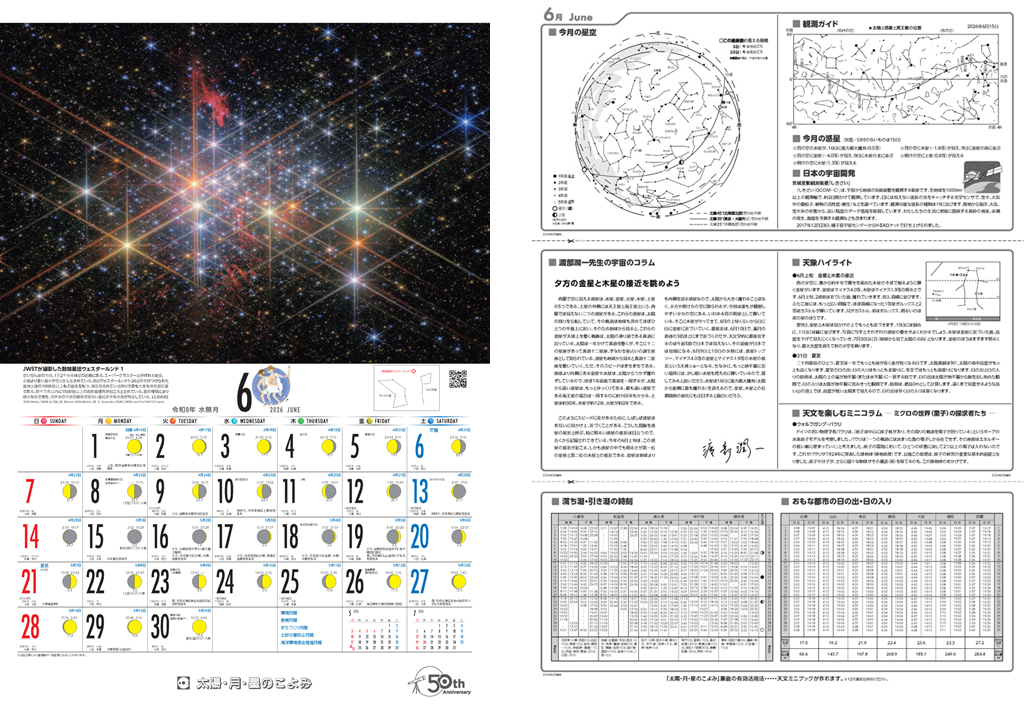 毎年多数のお問い合わせをいただき好評の「太陽・月・星のこよみ」を入荷いたしました!当館グッズショップで販売中です。見本も掲示してありますので、ぜひご覧ください。