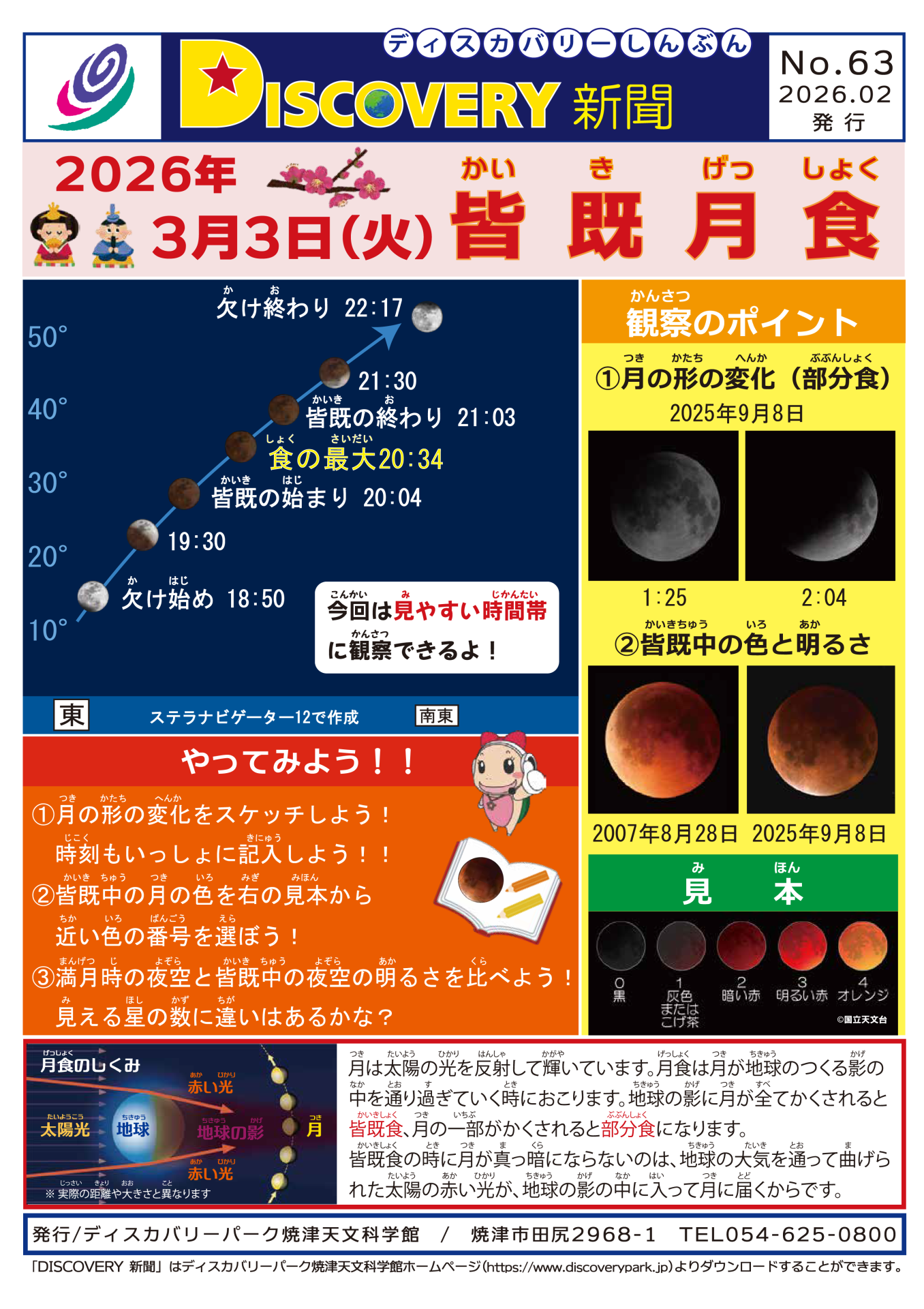 ★ディスカバリー新聞No.63「3月3日(火)皆既月食」(PDF)